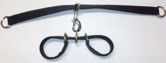 on both ends. Put one loop over the front leg and one on the opposite back leg in a criss-cross fashion,